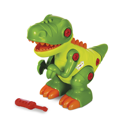 Olha que legal, quando ele abre a boca emite som real de Dinossauro! Vem com rodinhas para empurrar e acompanha chave e parafusos para montar e desmontar.